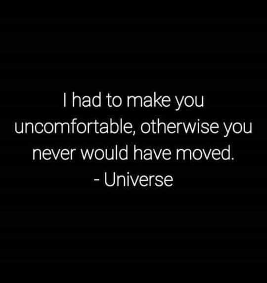 In your own life do not fear discomfort. Embrace it for the change it may be bringing you. Ask yourself if that discomfort may be pushing you to experience a season of growth and increase that comfort may be preventing you from taking the actions to achieve.
