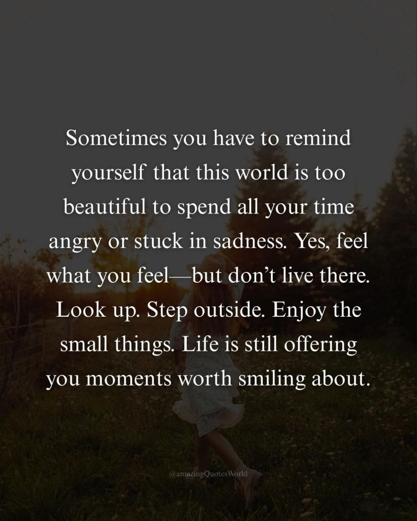 This is a very important point to ponder. It can be so easy to ride the waves of negative emotions, but that just leads to am ocean of despair and depression. That is not to say you should not validate your emotions. Like the quote above says, “feel your feelings” To that i would add to look for the lessons and what you can learn from them. Then, take a walk outside. You will be greeted with all kinds of beautiful reminders.