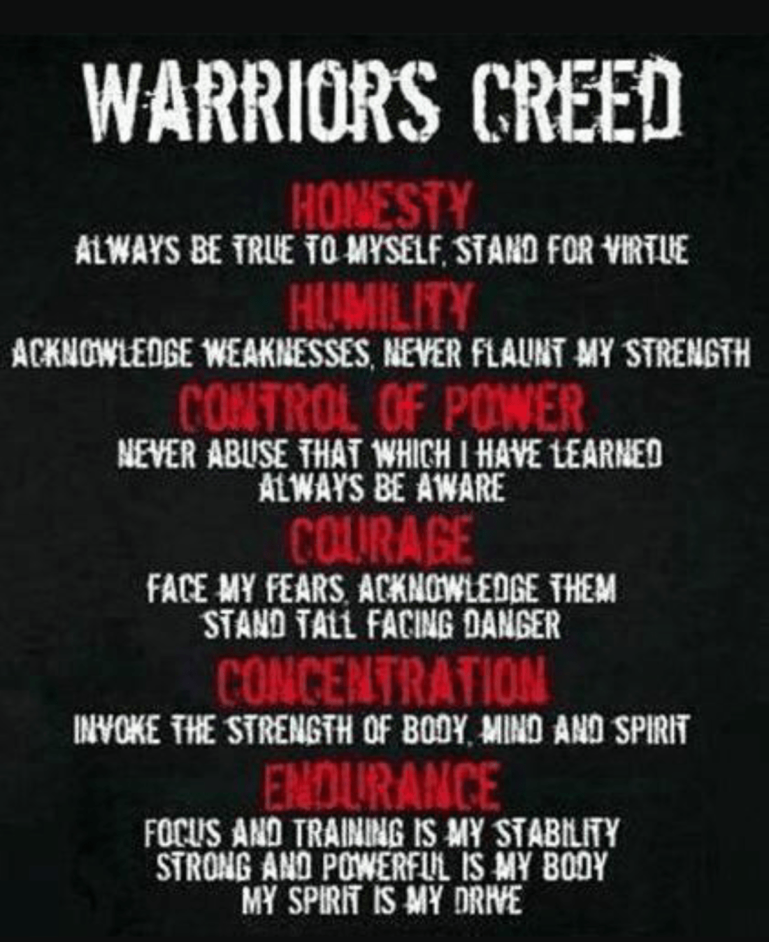 It was Lao-Tzu who said “Mastering others is strength; mastering yourself is true power”. Once we can control our emotions and live in action and not reaction. Once we can respond to anger with love we show the signs of an inner warrior. Are these things easy to do? Absolutely not. It may be the toughest battles we fight. It is easy to surrender to the negative emotions we are surrounded by every day. To maintain a positive disposition and encourage both ourselves and others takes a strength and courage very few have. When you meet one of these warriors know you are in the presence of someone very powerful.