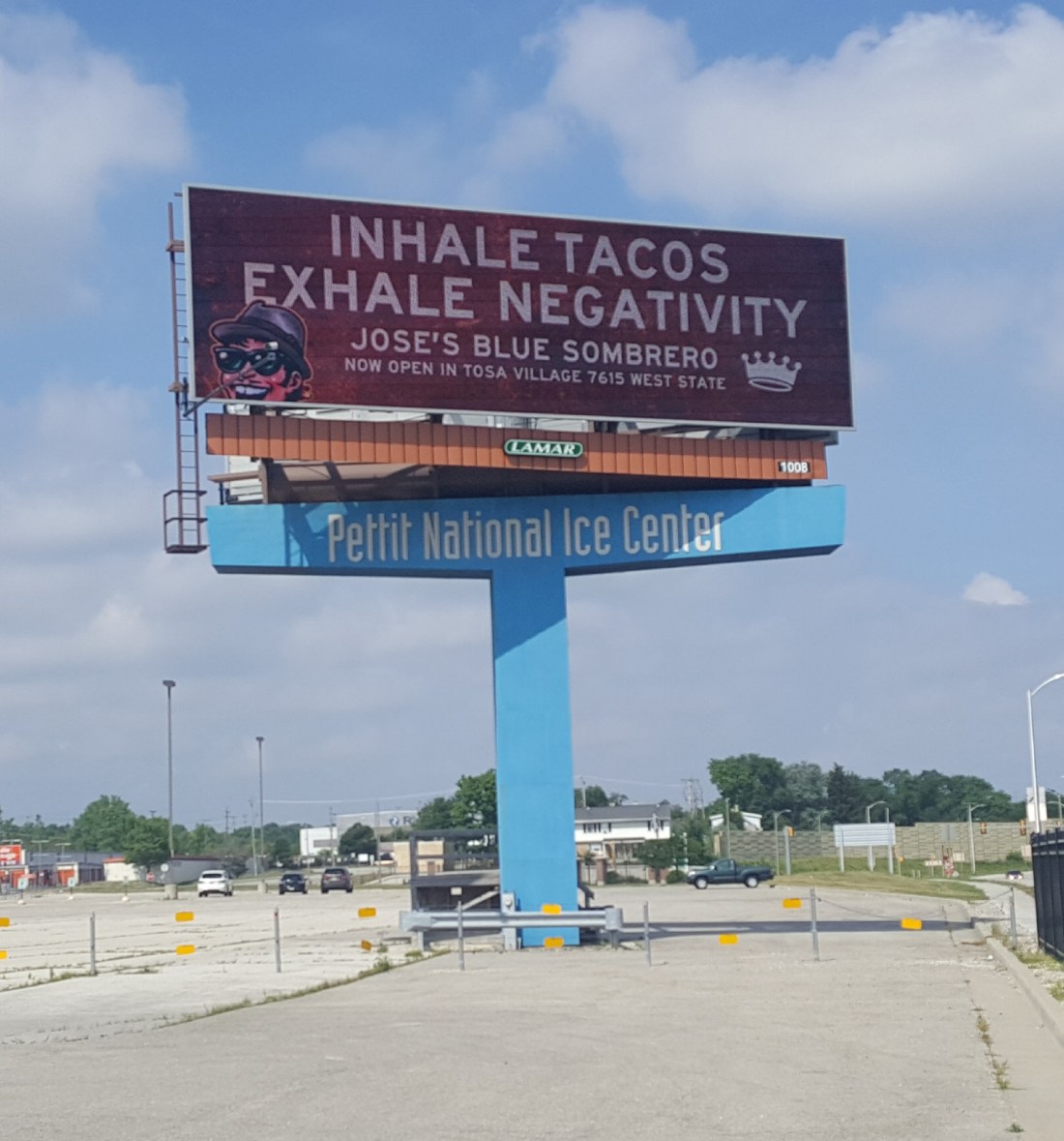 This is a picture of a billboard just outside the Wisconsin State Fair. It is a catchy little slogan for a Mexican restaurant. My mother and I have started taking walks after my heart trouble caused me to take a break from working out as hard as I would like. Being the state fair is probably my favorite place to go, it makes sense to choose that as a location to walk. This particular day my mother and I decided to walk the perimeter of the park to see how long that would be. (roughly 3.2 miles for those keeping track) While on the northern side of the park we came across this billboard.