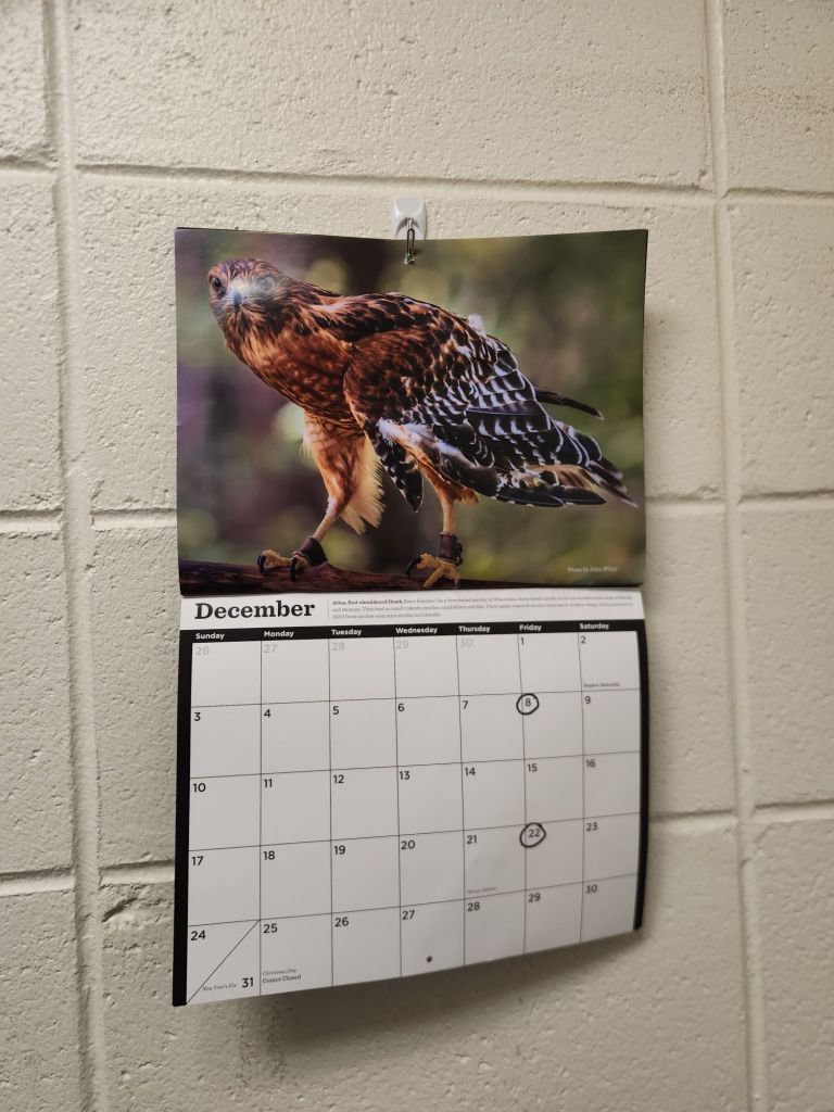 Sure, a button would have been cool, maybe a t-shirt. Why did my lady choose a calendar? Besides the fact that I have no need for another t-shirt, no matter how cool, it is a gift that keeps on giving. Each month they feature a picture of an exciting bird of prey. In addition to some quick learning, I am reminded of the amazing show we were at, the fun we had and the fact that the lady in my life loves me enough to surprise me with this calendar.