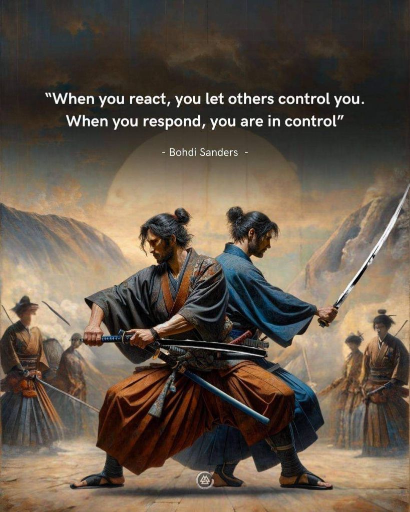 Two words to remember for the week ahead – react or respond. One gives control of your life away. The other keeps control right where it belongs, with us.βWho do you want to control your life? You or someone else?