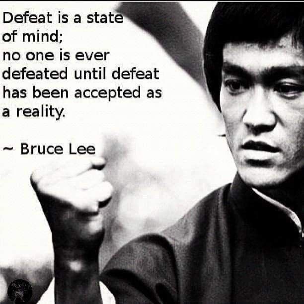 Next time you are feeling defeated, just remember this quote from our good friend Bruce. Stand up straight and say to yourself, “Even though I am feeling defeated, I will not be defeated until I stop trying.” Refuse to let life’s challenges get the best of you! You got this!
