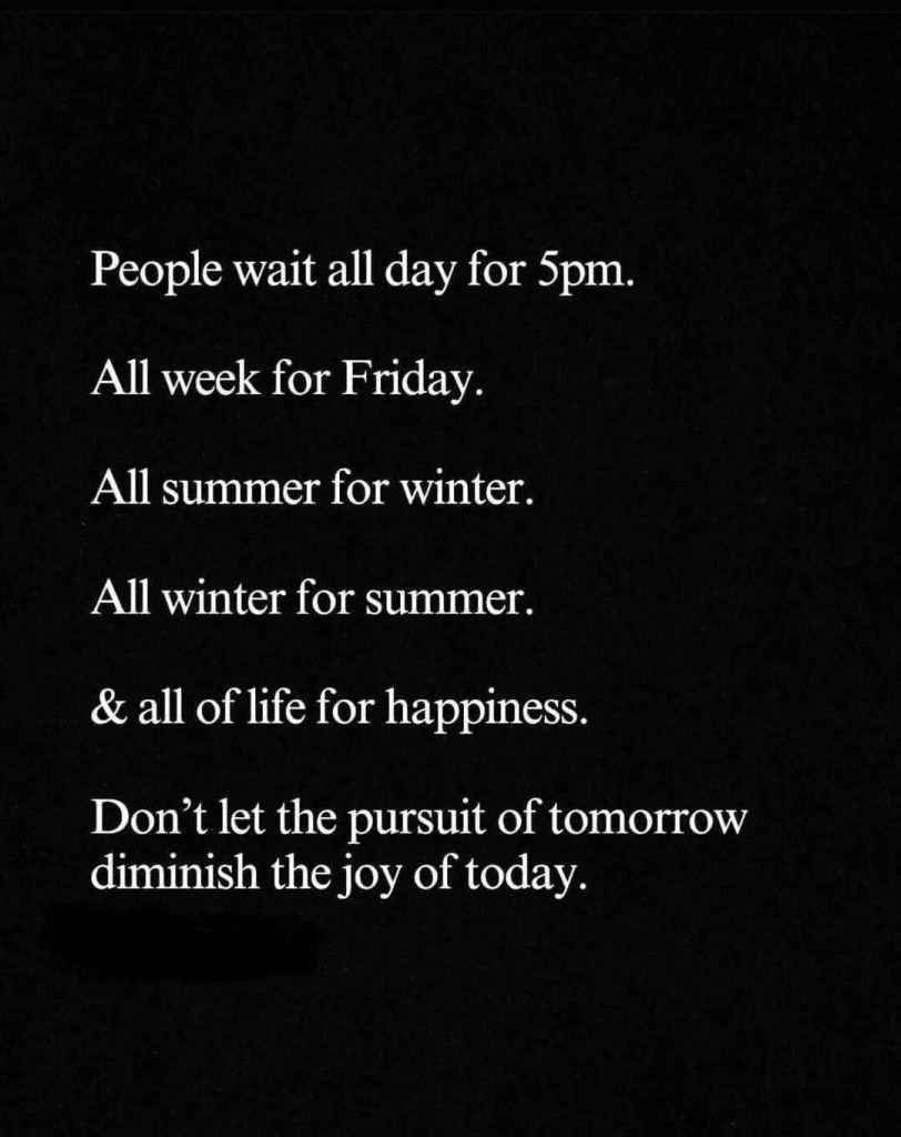 Starting now, keep looking forward to 5pm, look forward to the weekend and whatever else you are working towards. At the same time, be grateful for the journey that makes it worth while. Don’t forget to notice all the joy contained in that as well. Hopefully, I’ll see you on the beach soon!