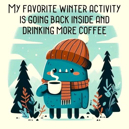 Yes, this is a funny little meme. Yes, it is also the honest truth for me when it comes to winter. It is also a great suggestion for appreciating different aspects of what the cold weather brings. I mentioned a few posts ago that where I live the weather is dangerously cold. The news is recommending people do not leave their house unless they have to. Makes you wonder why I am not on vacation writing to you from the tropics. As you read this, there is a great chance that I am doing just what the photo above states. Sitting inside enjoying a good cup of coffee. Chances are that I am doing so with some wonderful company as well.