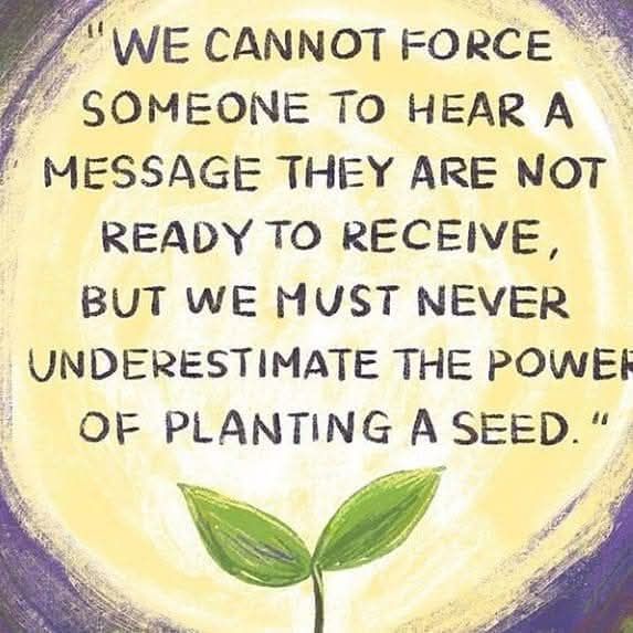 That leads us to our second reason for using this metaphor. You may want to stop by after some time and see how the seed you planted is coming along. If it does not seem to be blossoming, there may be several reasons. It may be growing slowly. It could use some extra help, or just some extra time. Maybe it did not take root at all? You may need to plant some more seeds or find more fertile ground. Just remember, the more seeds you plant, the more likely they are to grow. Spread the seeds of love, kindness and compassion wherever you go. You could even wear a pot on your head like Johnny Appleseed if you think it would help.
