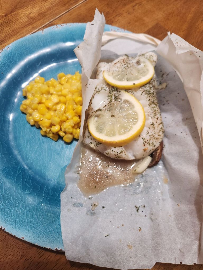 This is a picture of a mouth-watering dish created by that same beautiful lady of mine. It was cod cooked in parchment paper with mushrooms and onions. It was seasoned with dill and other spices. It was amazing! It was fun to watch her put it all together and help what little I did. Trying to pick the favorite dish this woman created would be nearly impossible. Everything she makes is so delicious. That is also something to be grateful for. It is also why I must go to the gym several days a week. Portion control is something I am working very hard on.