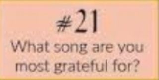 There are so many great songs for so many reasons. I would love to hear what yours are. Why are you grateful for them? Do they keep you connected to a loved one that passed away? Is it a song that you share with a friend? Perhaps, like me, there are songs that help you get through a workout? I would love to hear what songs you enjoy and are grateful for.