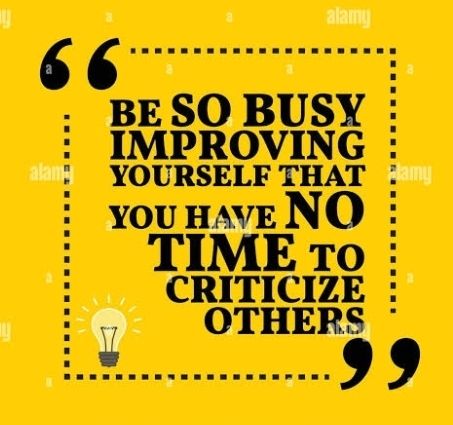 In our own life we often take time to criticize others. The people who you do not hear doing this are those who are working hard to make the most of their life. Why? Time spent saying something judgmental or critical about someone else is time that could, and should, be used to better your own life. Next time you are tempted to be critical, ask yourself a few very important questions. Is what I am about to say beneficial to me in any way? Would the time I am about use making this statement be better served working on improving my own life? Is my own life perfect? The answers to these questions should be pretty obvious for most of us.