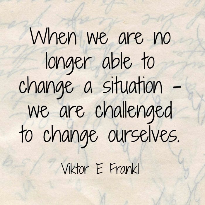 The man who wrote this spent part of his life in a concentration camp. In there, he had zero control of outside circumstances. He realized what he did have control of was his mind. It is the same with you and I. Our circumstances are not anywhere near as dire.