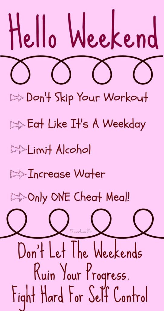 The weekend is here! We have earned it. Just a word of caution, do not let the two days after Friday ruin all your effort from the five days before Friday. We might be able to relax a little more on the weekend, and we should, but stay committed to your goals!