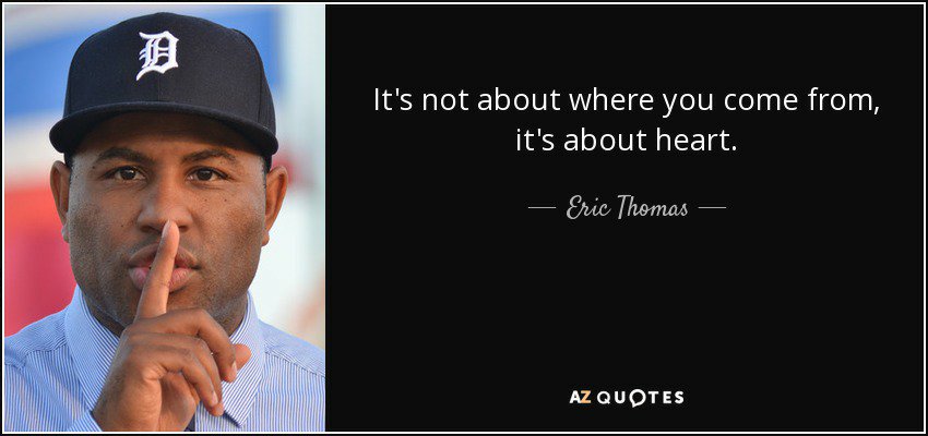 What impresses me about Ricky, is his perseverance. Although many people could have used these as an excuse to give up, and it would be understandable, he has overcome. That is not to say he has not struggled with some demons, in fact he is conquering some as you read this, but he is fighting. It reminded me of the quote from Eric Thomas above It is not where you come from,it’s about heart.