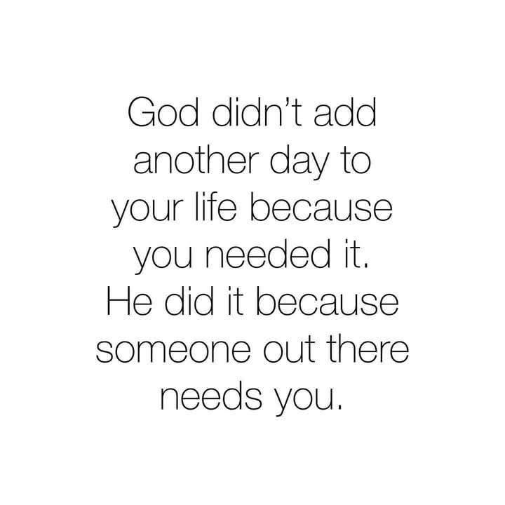 I often share the great reminder that my friend Kaylene gave me to take the focus off of myself and consider how I can help others. It takes a true friend to remind you of that when you are in the middle of a meltdown. Next time you find yourself down and out, remember you might have been given another day because someone else needs you. Work on finding out who that is!