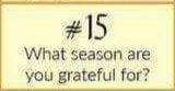 What season are you grateful for? How did you interpret this question? Seasons of life? Seasons of mother nature? Holiday seasons? I would love to hear your answers.