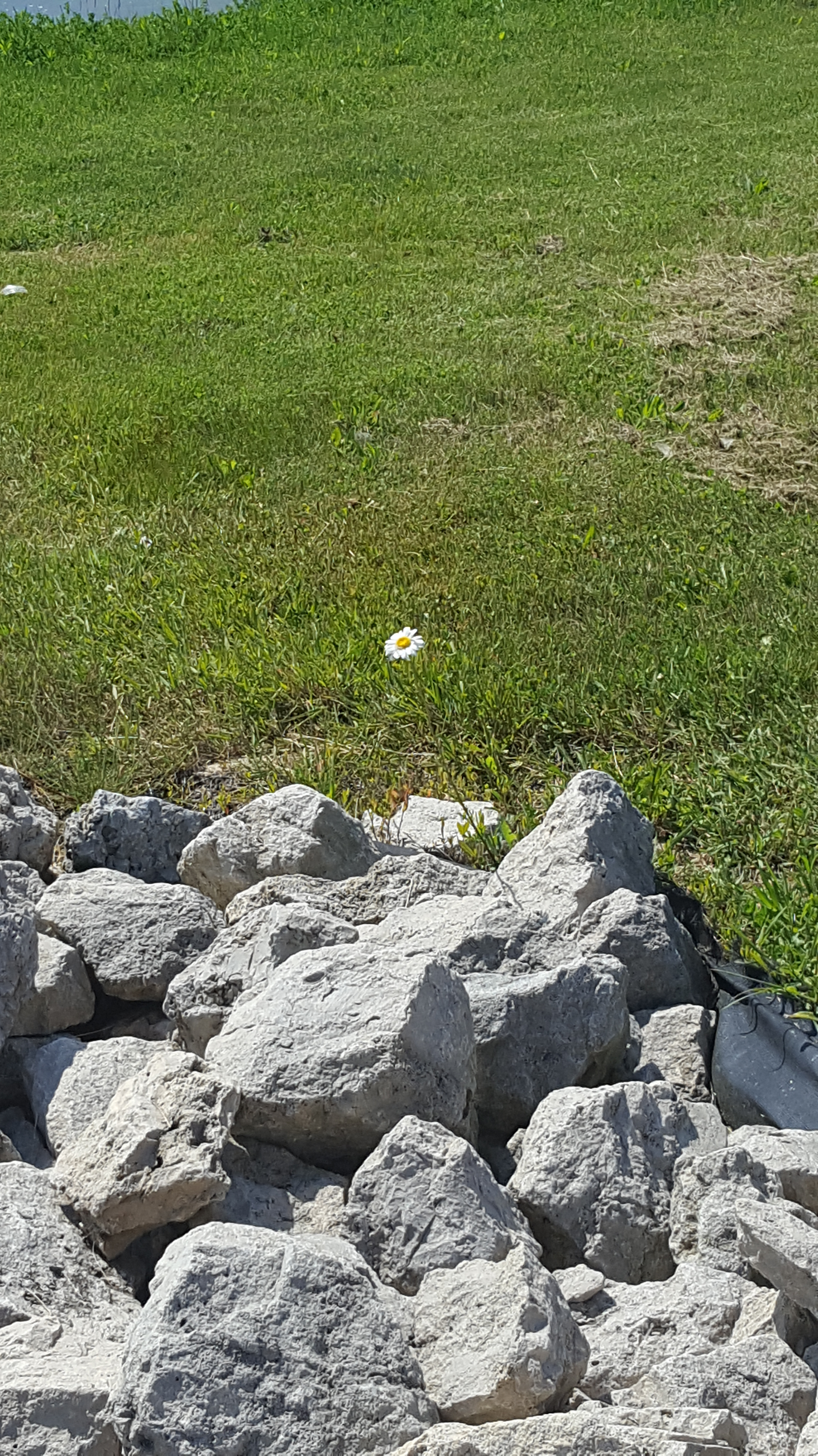 I took this picture the other day. Immediately I noticed the daisy. It is as if it were growing straight out of the rocks. You could say it is the rocks that made the daisy stand out. If this flower had been in a meadow it may not have grabbed my attention so much. This struck a chord in me. Beauty can often best be appreciated where there is none. For those of you who are a fan of rocks, I apologize and am not calling them ugly. Even if you are a fan of stone formations, you must admit the daisy does jump out in the picture.