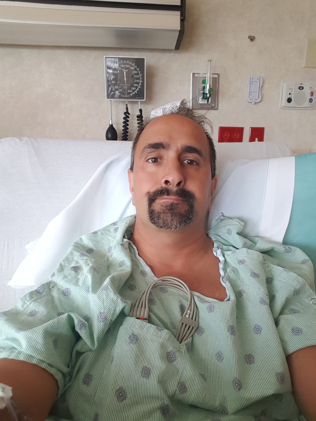 This is me. Not a very glamorous photo I know. Today at the gym I noticed my heart rate was a tad high. Ok maybe more than a tad, around 220. I felt fine but by the advice of my young lady I called the doctor and was told to go to the hospital.