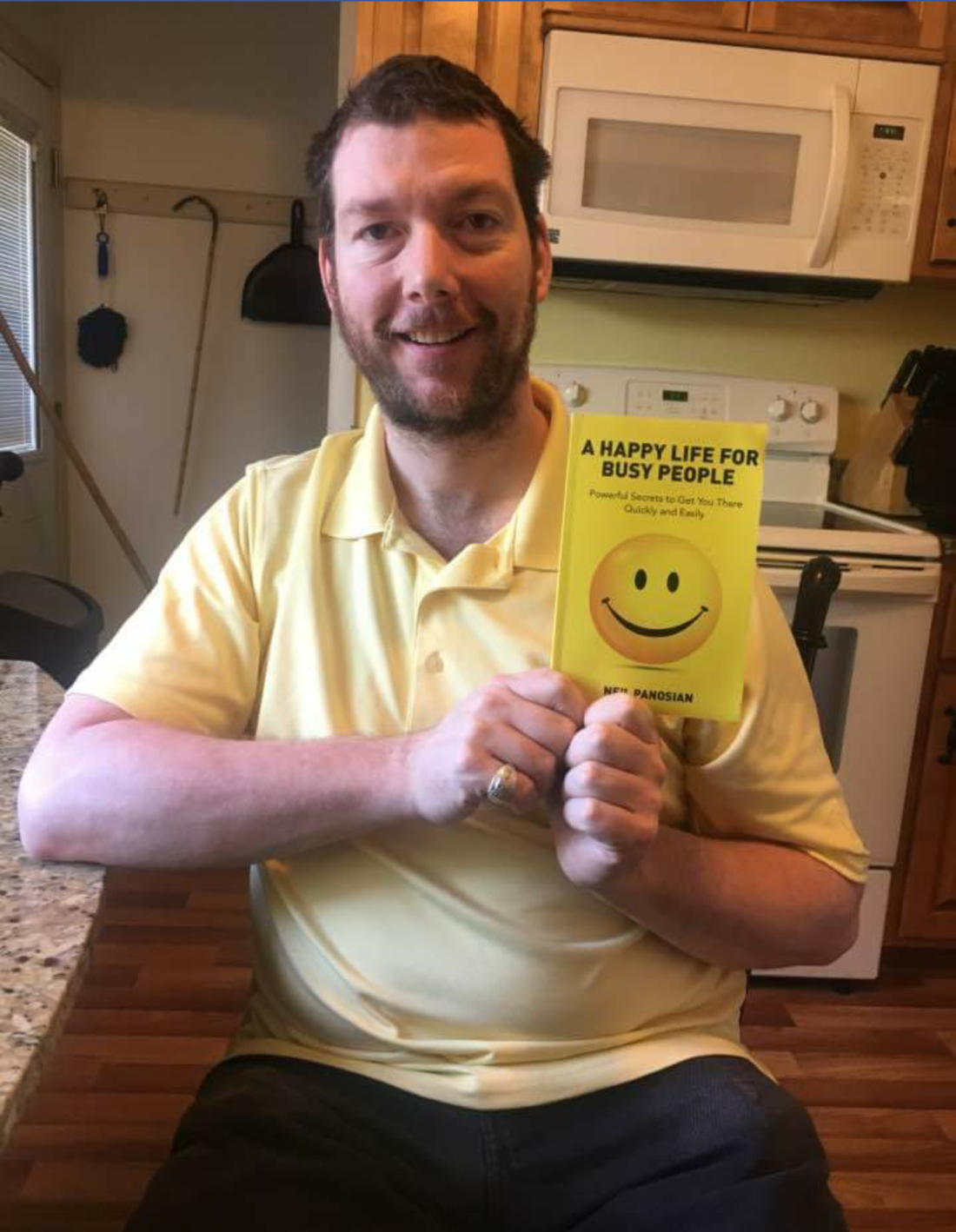 “Hello all. My name is John O’Brien. I came across the book A Happy Life for Busy People quite happenstance. It was given to me as a gift by my girlfriend. In its pages I found quick and easy action steps anyone can choose to use to bolster the level of happiness in their life, no matter how busy. I have implemented several of these ideas in my life on a daily basis and find myself more and more eager to implement another and another. Neil Panosian truly has done a great deal to find what works, and for that, I am grateful…which, as he knows…makes me happy”