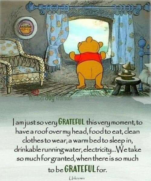 The same can be said for thoughtful actions of others. When Margie knew I was going to write at home today as all of the coffee shops are closed, she prepared a little area for me including plugging in my ‘happy lamp’ because it was a very gloomy day. I was very grateful for this. If she had bought me a pizza or a bottle of rum I would have been grateful for that. Not because of the material aspect, but because of the thought behind it. When strangers hold doors for me or smile and share a kind word, these things mean a great deal to me.