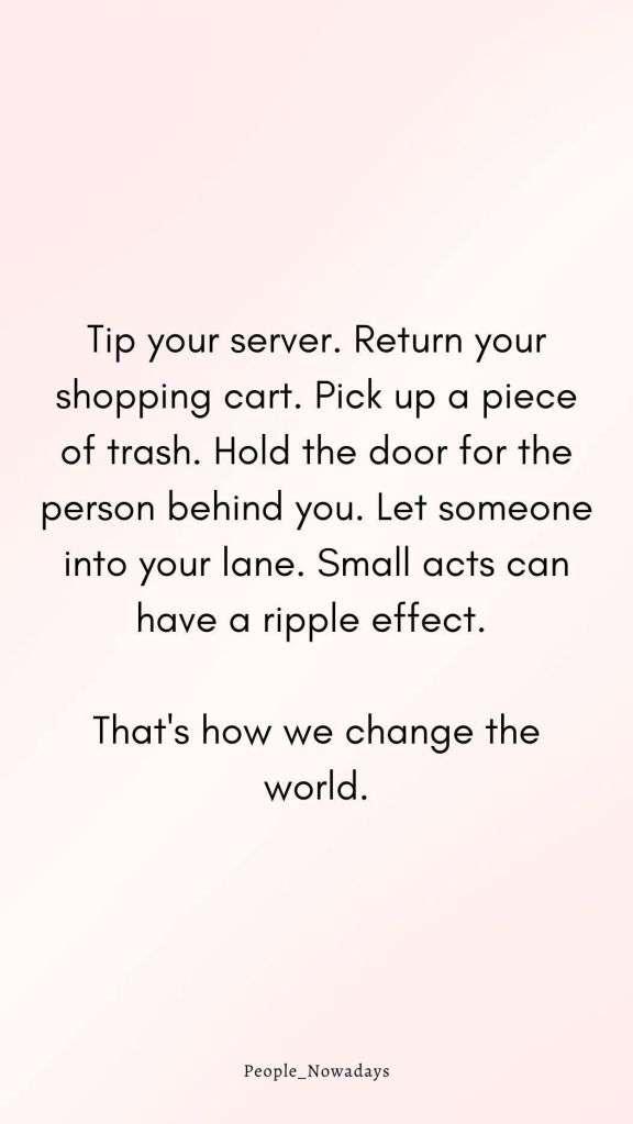 Today is random acts of kindness day. It is our chance to make the world a brighter place for each and everyone! Don’t think that one act of kindness could make a difference? There are over 8 billion people in the world! Imagine if just 1% of them did a random act of kindness. That would be 80 million people doing a random act of kindness. Let us say that act only affects 1 person. That brings us to a total of 160 million people being positively affected! Consider the ripple effect and you can’t begin to imagine how big this could get. All that from one simple act of kindness.