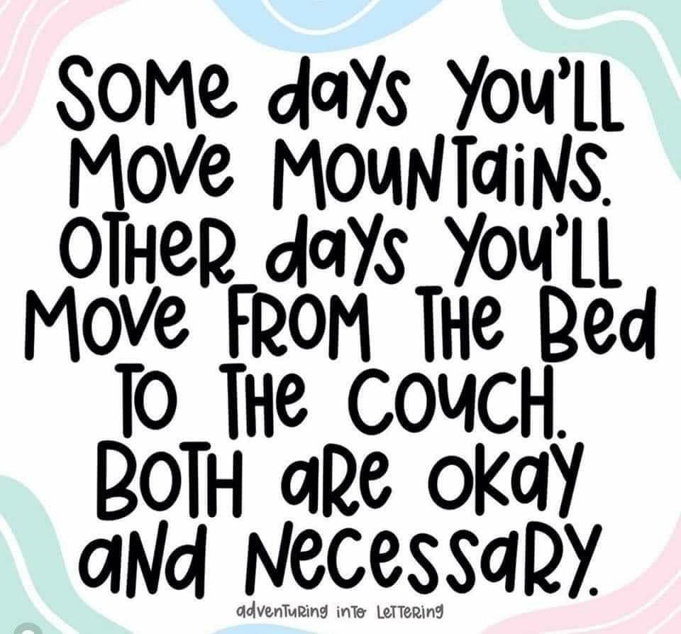 If there is a skill I am lacking, it is how to relax properly. I have 62 of the 102 typed pages edited for my new book. I also set up and did the cover art for my upcoming podcast. I have to realize not every day you can move mountains. So should you. The days on the couch can often be necessary for recovery and recharging. Take them, just don’t take too many of them.