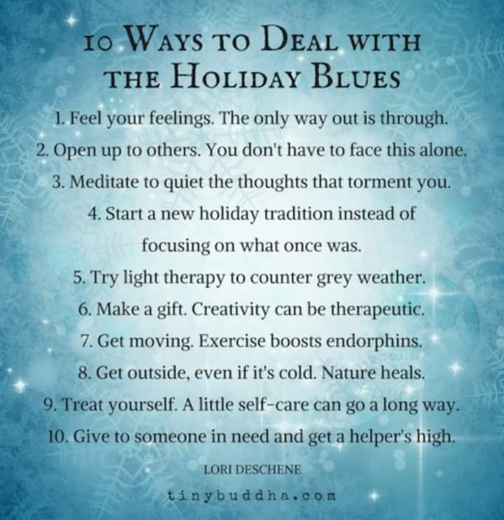 Remember to treat everyone with a little extra kindness this holiday season. There are so many who are fighting inner battles that we know nothing about. If you have any tips that we can use to help us deal with the holiday stress and blues we might be feeling, please list them in the comments below. We can never have too many.