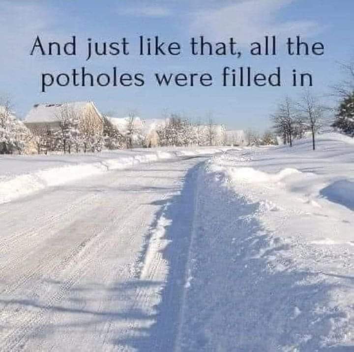 In any situation, I recommend finding the lesson and the blessing. Asking yourself the questions “What is positive about this?” and “How can I use this?” Thinking about the permafrost that was once my backyard, I was having difficulty finding anything to enjoy about it. Even my car was not to thrilled to be out in the elements. Then I saw the picture above online. It not only made me laugh, it brought up a good point. The roads here are filled with holes from the plowing and road salt sitting on the concrete. When it snows and freezes, it fills the holes and, for a little while, the road is actually smoother. Do not get me wrong, I still would rather be laying on a beach chair under a palm tree, but this makes the cold a little easier to take.
