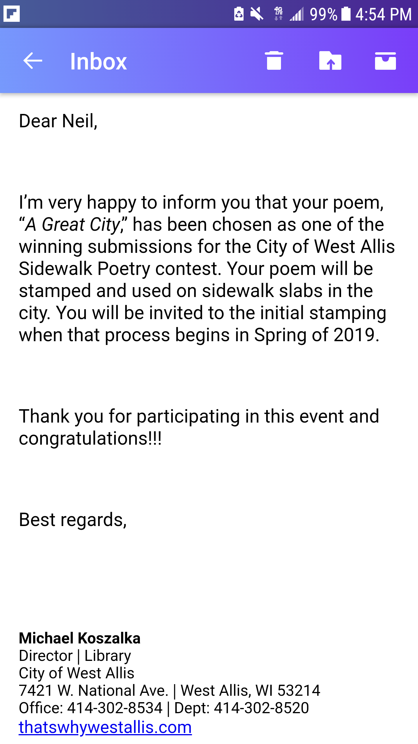 Here is my suggestion. Take note of 3 miracles you see in life, be it your own or others, and write them down every Wednesday. See the difference it will have in how you approach the rest of your life. Writing them down accomplishes two very important things. First, it forces us to slow down and think of them. Second, it gives us a great list to refer back to when we need a little lift. Now, if you will excuse me, I am going to celebrate the miracle of warm weather in Wisconsin.